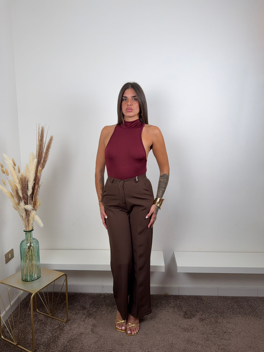 Pantaloni satinati marroni