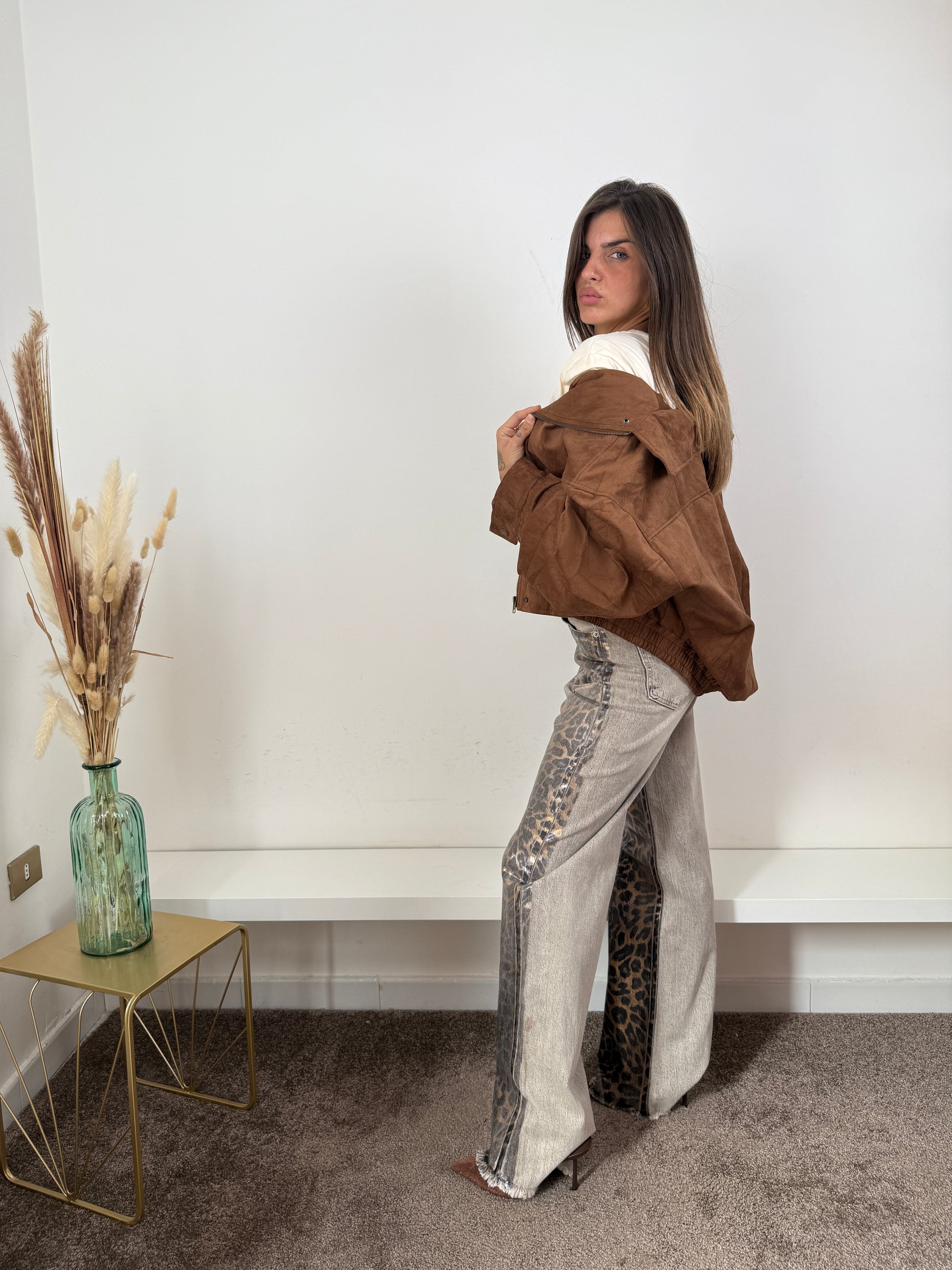 Bomber in camoscio marrone
