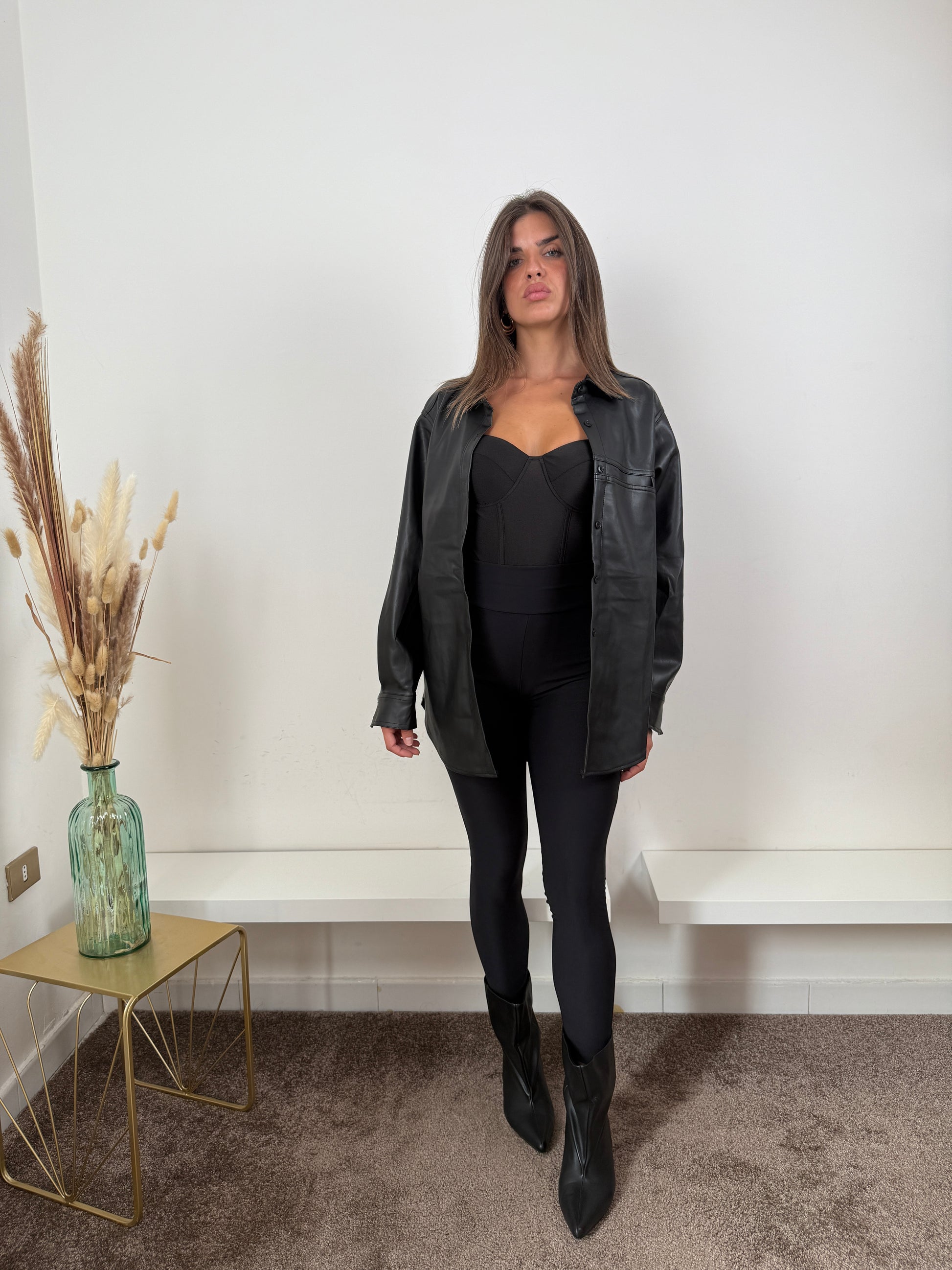 "Aggiungi un tocco di stile al tuo guardaroba con questa camicia in ecopelle nera. Realizzata con materiale di alta qualità, questa camicia è perfetta per un look audace e originale. Combina comfort e moda in un'unica soluzione! (Non potrai più farne a meno!) “