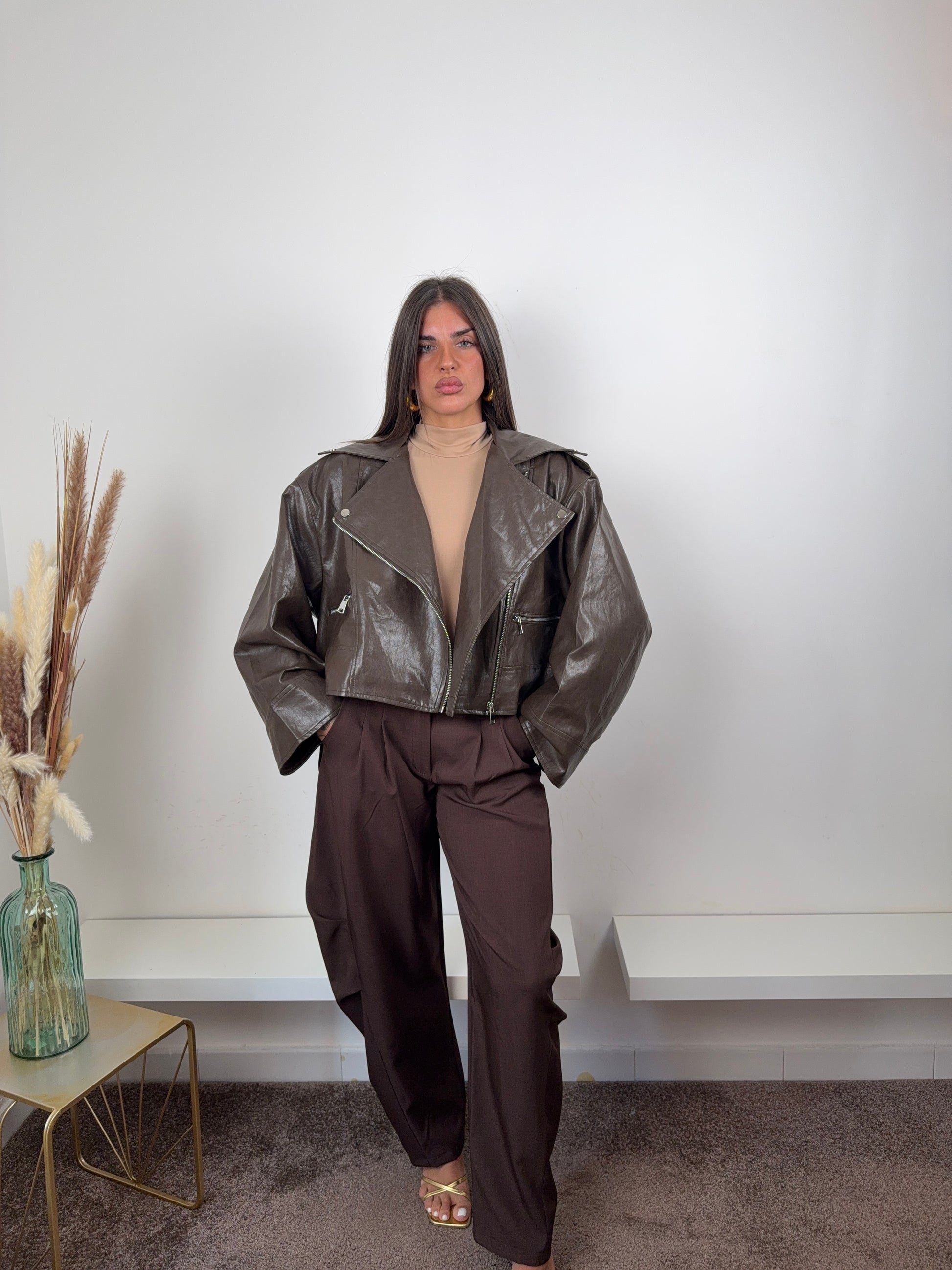 Giubbino ecopelle marrone