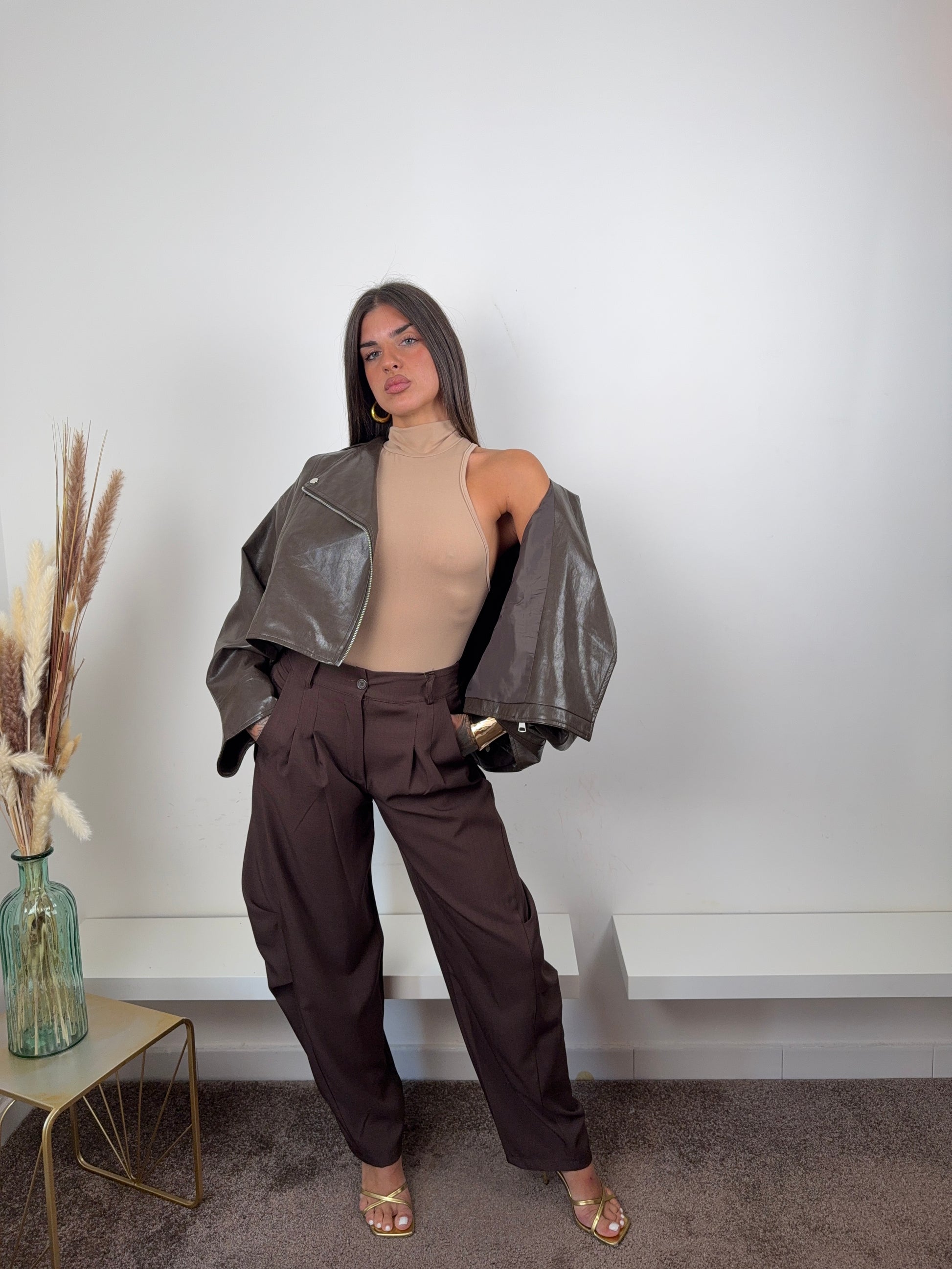 "Aggiungi un tocco di stile con il giubbino ecopelle marrone. Realizzato in pelle ecologica di alta qualità, questo giubbino aggiunge un tocco di classe al tuo outfit. Perfetto per qualsiasi occasione, il suo design elegante e versatile lo rende un must-have per il tuo guardaroba. Affronta con stile l'inverno con il giubbino ecopelle marrone."