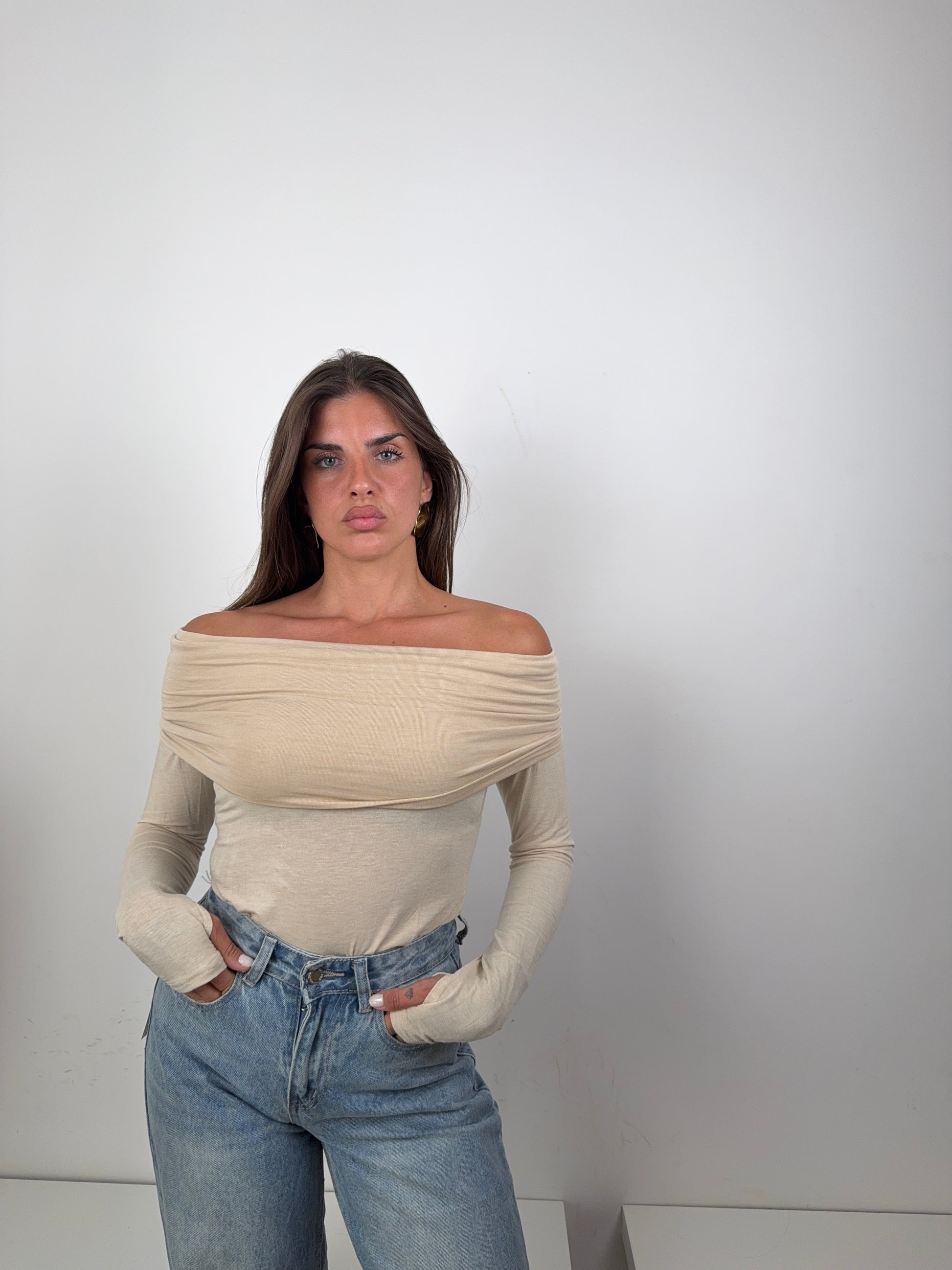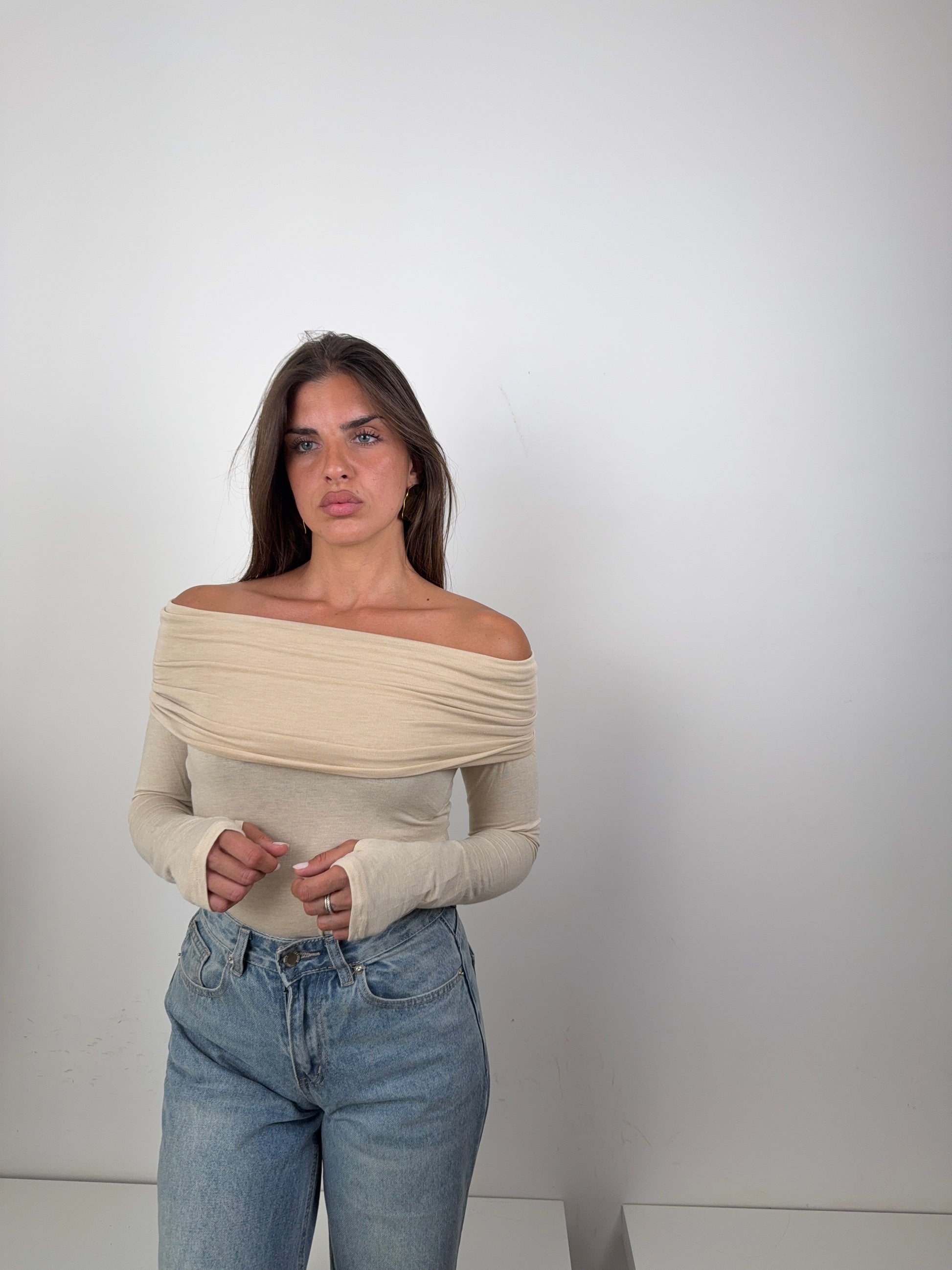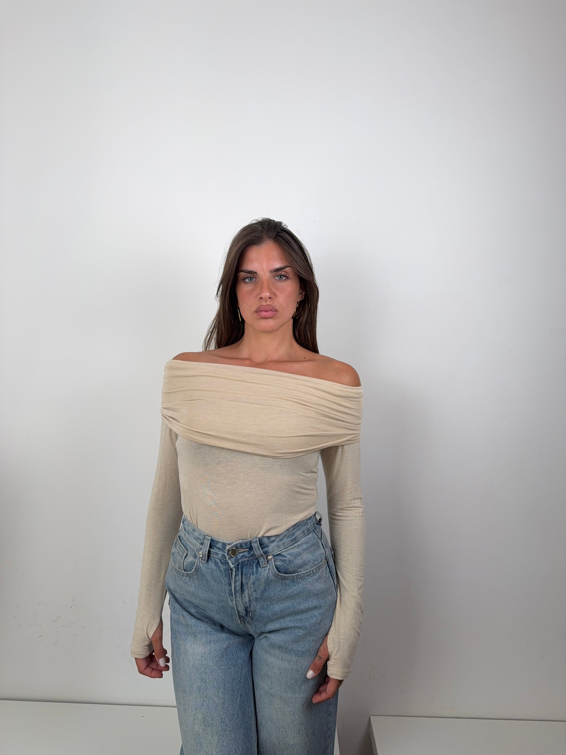 "Distinti dal classico, con questa maglia scollo a barca panna sarai alla moda! La maglia è versatile e comoda, perfetta per ogni occasione. Risalta il tuo stile con un tocco di freschezza."